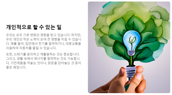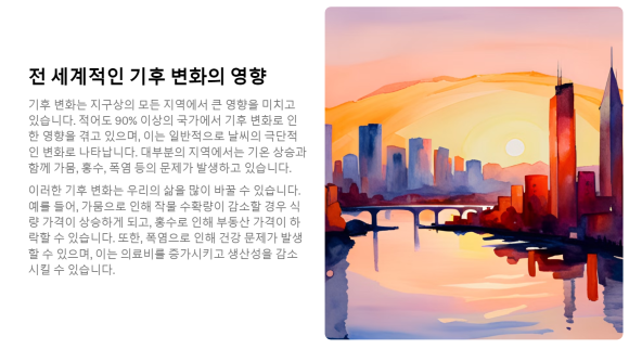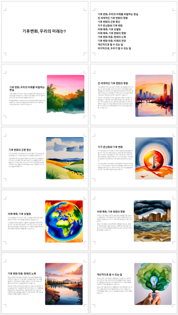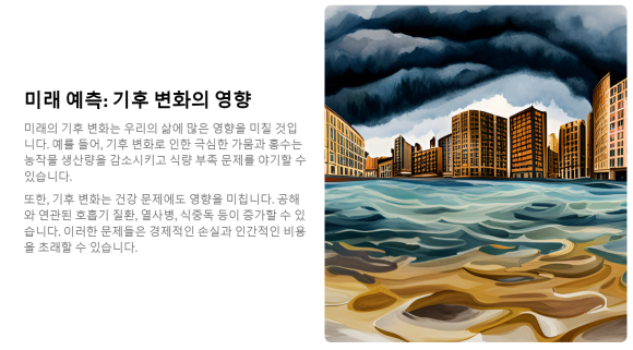 "기후 변화의 현재 상황과 미래에 대한 예측"이라고 기재해보겠습니다.