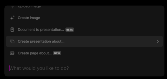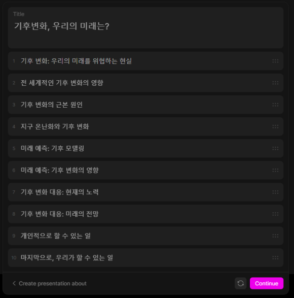 "Create presentation about..." 클릭